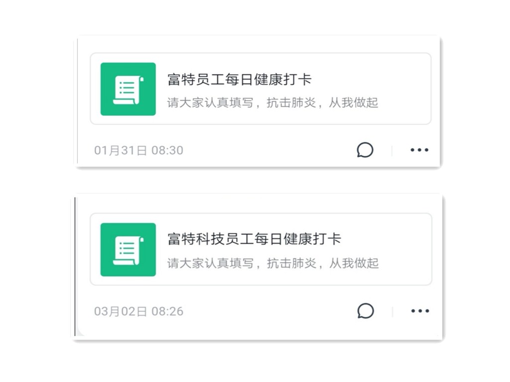 信息收集:員工健康打卡,保證掌握員工每日身體及復工條件信息